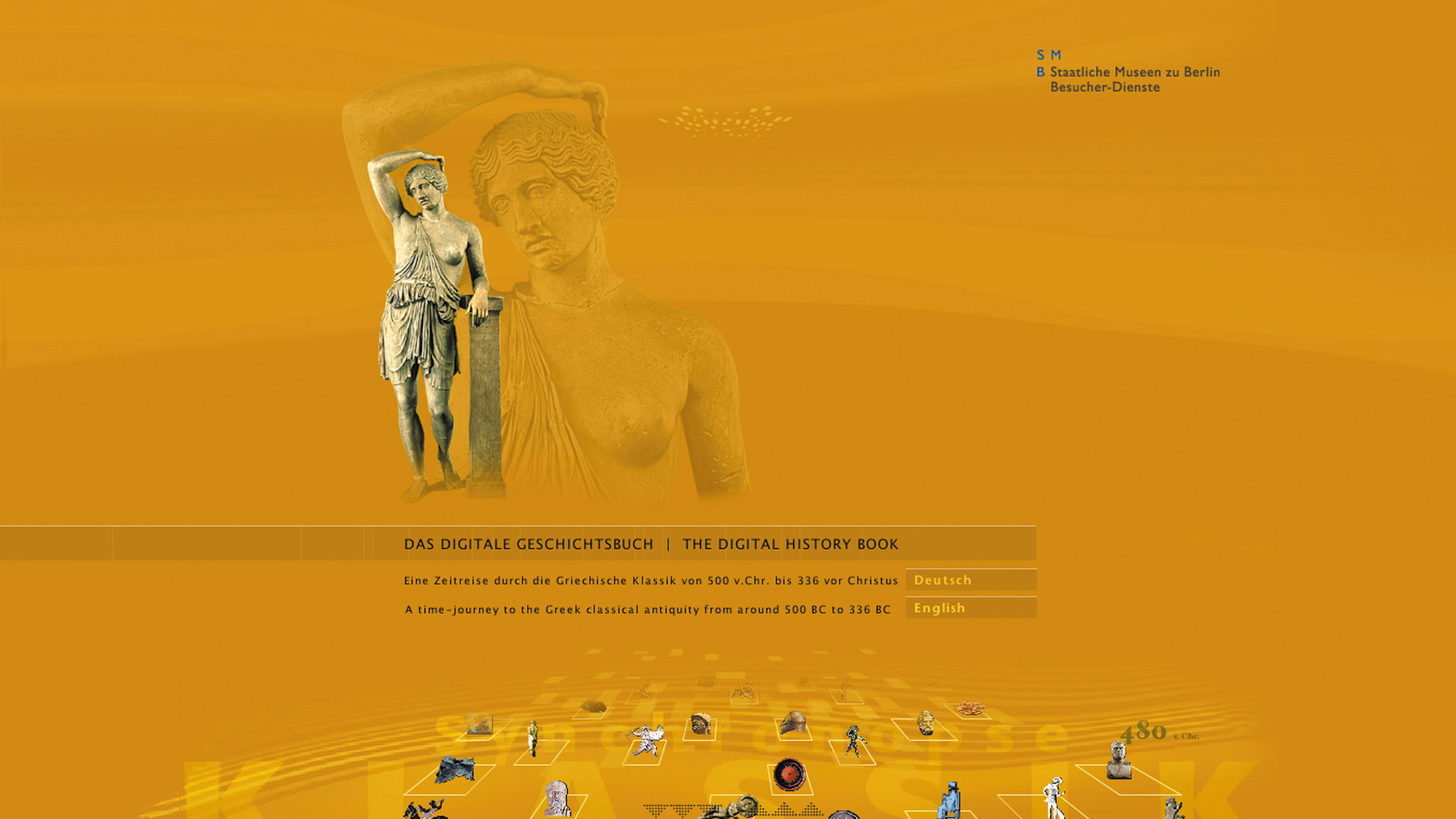 wurde erstmalig zur Ausstellung »Die griechische Klassik — Idee oder Wirklichkeit« im Martin-Gropius-Bau in Berlin von märzdesign entwickelt und wird über den Ausstellungsrahmen hinaus als fest installiertes Besucher- Informationsystem im Pergamonmuseum auf der Museumsinsel genutzt. Von märzdesign gestaltete Computerterminals stehen den Besuchern des berühmten Museums für eine »Zeitreise« durch die griechische Klassik zur Verfügung. Damit bietet »Das digitale Geschichtsbuch« einen Orientierungsrahmen, der die Ausstellung sinnvoll ergänzt.